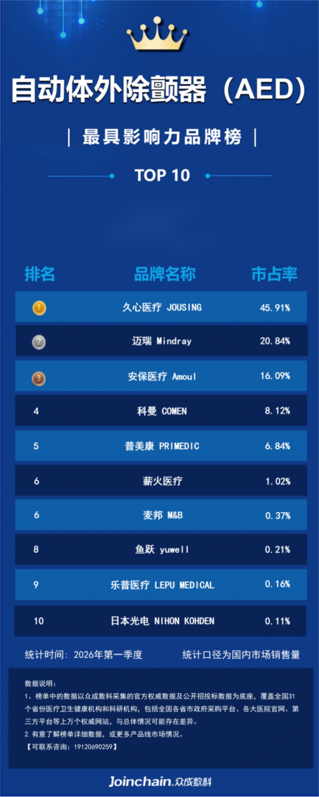 据众成数科医械云标讯MDBIDS统计,2026年第一季度,久心医疗以45.91%的市占率位居中国AED销量第一,远超迈瑞医疗(20.84%)和安保医疗(16.09%)。这一成绩的背后,是久心医疗在技术研发、产品性能和行业标准制定上的持续深耕。